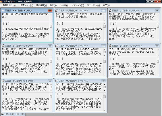 「一冊の聖書を開く」 ●聖書ウインドウの自動整列(Alt+F)