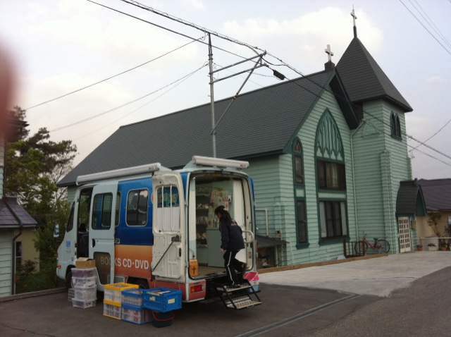 雨でしたので、教会の中にも商品を運び込み、陳列しました。