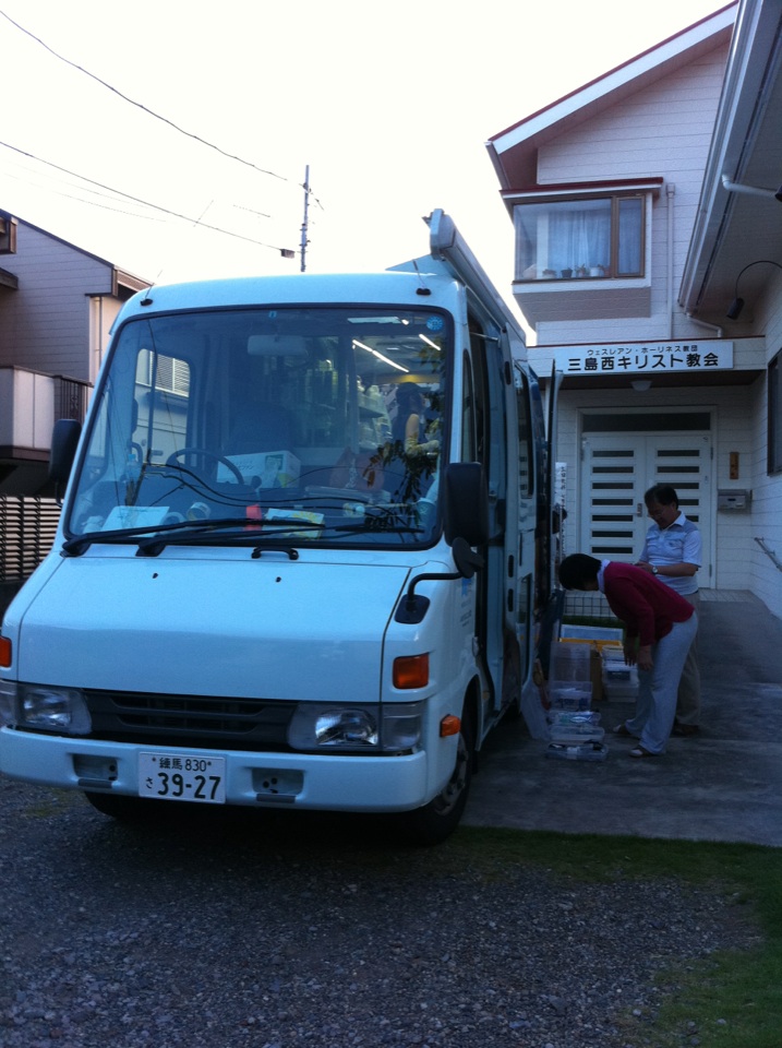 午後から夜にかけて人吉ともしび聖書チャペルにお伺いしました。場所が分からなくて、井上牧師が途中お迎えに来てくださいました。ゴスペルボックスを見るなり、「入るかな?」と一言。 そこでまずゴスペルボックスを空き地に置き、先生の車で細い道を走ってみました。昔トロッコ列車が走っていた所をコンクリートで舗装しているだけでガードレールもない道。トロッコ列車が走るだけあって、さすがに道が狭い。おまけに途中、桜並木が両側からアーチ状に枝を交差している。天井で手を伸ばしている感じだ。「高さ大丈夫か?!」しかし、行かねばなるまい。覚悟を決めてゴスペルボックスを慎重に走らせ、無事に天井も枝にこすらず無傷で教会のあるともしびキャンプ場に到着。