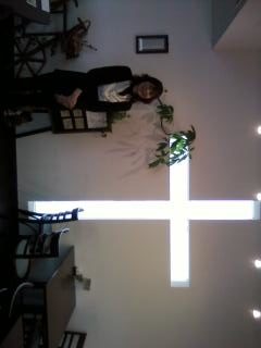 礼拝堂内を見上げると、あのお城のような天守閣の内側は、すてきなステンドグラスになっていました。これは感動です!