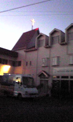 11月16日(金) インマヌエル磐田教会 2012年11月19日 ゴスペルボックス 穏やかな天候の今朝、始めにインマヌエル磐田キリスト教会へお伺いいたしました。朝日を背に輝く教会堂の三角の赤い屋根が、ゴスペルボックスを迎えてくれました。