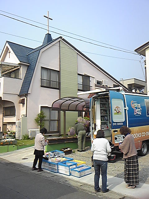 今日は静岡県伊東市にあるへお伺いしました。この日は生け花の作品展を開催中で、教会員の方々の作品が礼拝堂半分のスペースを使ってクラシック音楽が流れる中、見事に展示されていました。外はあいにくの雨模様でしたが、教会員の方々が交代で外に停めたゴスペルボックスの中をご覧頂きました。