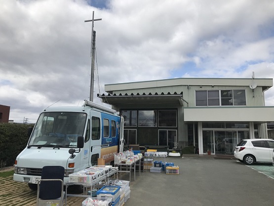 夕方は天童聖書バプテスト教会 みくに幼稚園へお伺いしました。園舎の入り口に陣取らせていただき店開き。みくに幼稚園の園長先生を始め、先生方、教会の神学生までお買い物をされました。「山形にはキリスト教書店がないので、ありがたい」と多くのありがたいお言葉をいただき、沢山の励ましをいただきました。感謝!