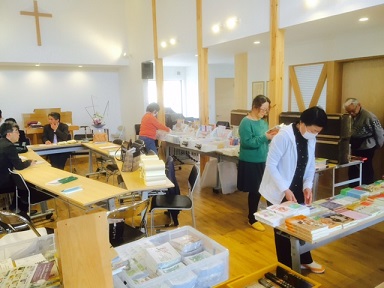 加茂福音キリスト教会 2018年4月18日 ゴスペルボックス 無事に加茂市に入り、少し到着が遅れましたが、加茂福音キリスト教会の午後の祈祷会へお伺いしました。会の中では証しと書籍の紹介をさせて頂き、外に駐車したゴスペルボックスと共に、別室に運び入れた商品のお買い物を楽しんで下さいました。