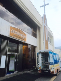 2018年5月16日 旭川福音教会 2018年5月17日 ゴスペルボックス 午後は旭川福音教会へお伺いしました。特に集会はありませんでしたが、信徒さん達やピアノ教室に通う親御さん達が、広い駐車場に停めさせて頂いたゴスペルボックスで、書籍やグッズをご覧下さいました。