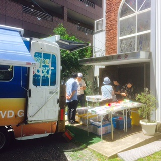 次に茨城県石岡市まで移動。石岡シオン教会へお伺いしました。猛暑の中でしたが教会前の木の下の木陰にテーブルを出され、皆さん待っていて下さいました。到着すると商品の出し入れをお手伝い下さり、お買い物下さいました。先生が一昨年まで横浜に赴任されていて、スタッフとの久しぶりの再会に大変喜んで下さいました。