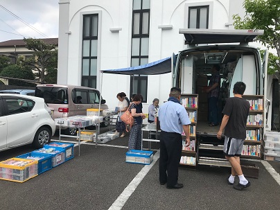 今にも雨が降りそうな雲でしたが、皆さんに福音文書を見ていただき、終了後、荷物の積み込みを完了したと同時に雨が!守られて感謝でした。