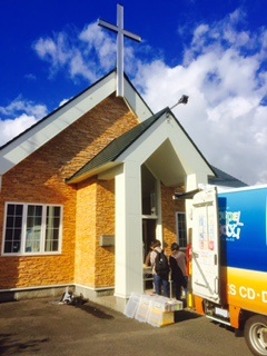 2018年10月2日 聖パウロ旭川ルーテル教会 2018年10月4日 ゴスペルボックス 今朝は聖パウロ旭川ルーテル教会へお伺いしました。先生は急遽ご不在になりましたが、役員さんがお買い物に来て下さいました。近所の美味しい旭川塩ラーメン屋さんをご紹介下さいました。寒いせいもあり、大変美味しいく頂きました。