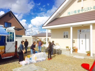 礼拝の報告時に、ゴスペルボックスの南西諸島巡回の証しをさせて頂きました。北海道の皆さんにとって、はるか南西諸島の教会の様子は珍しく、興味深く聴いて下さいました。昨夜から台風25号が北海道を通過。外は大雨でしたが、会堂玄関横の一室と廊下を利用して展示させて頂きました。