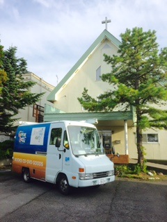体育の日の今朝は、砂川福音教会へお伺いしました。特に集会はありませんでしたが、月曜日にもかかわらず先生ご夫妻が暖かくお迎え下さいました。信徒さん達も次々と集まって下さり、お買い物を楽しんで下さいました。片付けの後、お茶を頂きながらゴスペルボックスの近況や南西諸島巡回の証しをさせて頂きました。