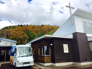 登別から苫小牧の西まで移動し糸井福音教会にお伺いしました。雲の影から光が射して参ったのですが、教会へ到着時の物凄い勢いで雨が降り始め、教会様のホールと礼拝堂をお借りしてのお店開き。