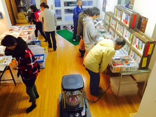 時に晴れ間が出ましたが、また突然のヒョウ。商品は安全な会堂内へ。そんな悪天候にもかかわらず、信徒さん達が次々とお買い物に来て下さいました。あるご夫妻は90頭の牛の牧場主。今朝、苦しんでいた母親牛が無事に子牛を出産し、ホッと一息つけたので来ることができたそうです。信仰書を求めて、いろいろなドラマがあるのですね。