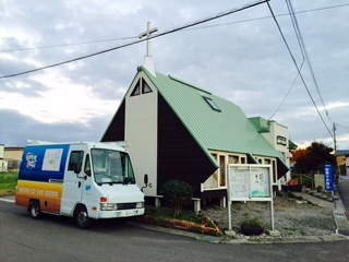 午後はキリストめぐみ函館教会へお伺いしました。こちらでは午後に祈祷会をもたれていました。終了後、会堂横に停めたゴスペルボックスでお買い物下さいました。夕方になると日が暮れるのも早く、急速に気温が下がっていきます。片付け時に温かいココアを頂き、身体がポカポカ…ありがとうございました!