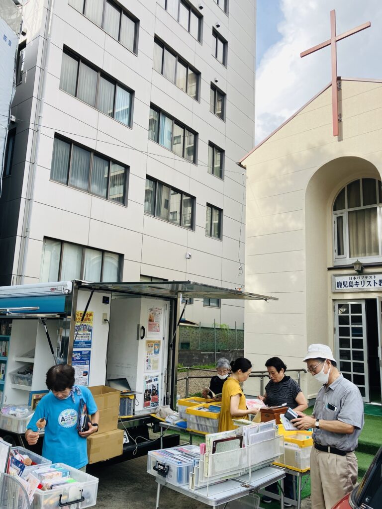 2025年9月20日(土)2.鹿児島バプテスト教会 2025年10月6日 ゴスペルボックス 再び突然の土砂降りがありましたが、午後は鹿児島バプテスト教会へお伺いしました。地域間諸協会の会合があり、前後の時間にお買い物に立ち寄って下さいました。 突然の激しい雷雨がある鹿児島市内