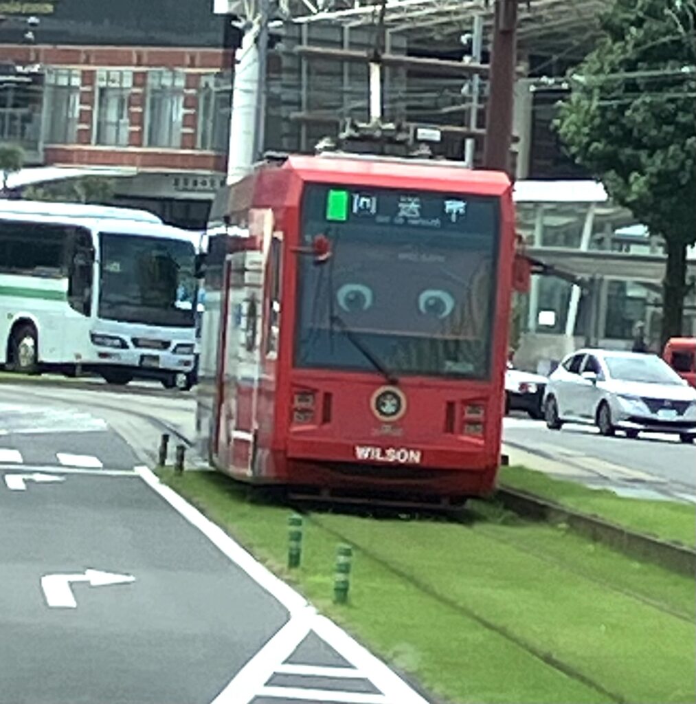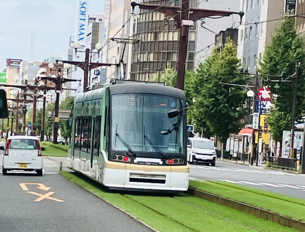 2025年9月20日(土)3.オマケ「市内を走る市電」 2025年10月6日 おまけレポート 鹿児島市内を走っていると、あちこちで市内を巡る市電が健在です。都心育ちのスタッフにとっては珍しい光景で嬉しくなります。 ちょっとした遊園地にいるようです。