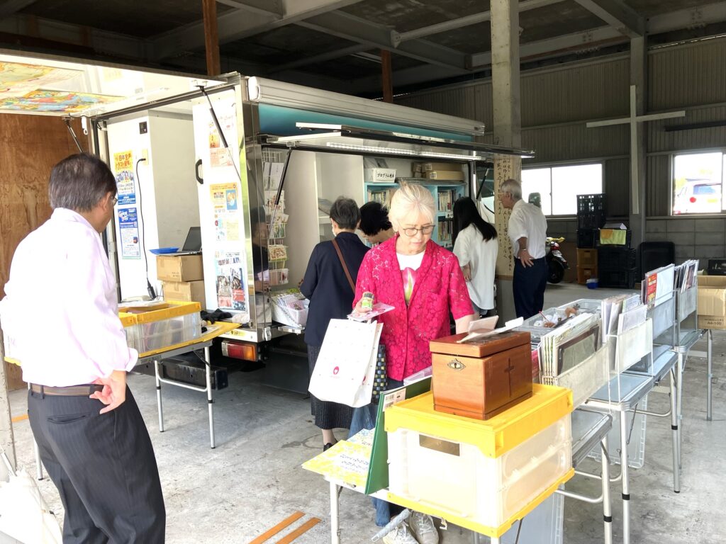 2025年9月21日(日)1.鹿児島シティチャーチ① 2025年10月6日 ゴスペルボックス 今朝は鹿児島市内の高台にある住宅街で宣教に取り組んでおられる、鹿児島シティチャーチの主日礼拝へ出席させて頂きました。礼拝内では山口県を巡回した際のフランシスコ・ザビエルのエピソードを証しさせて頂き、別棟の建物内でお買い物を楽しんで下さいました。 ここなら雨でも大丈夫です。