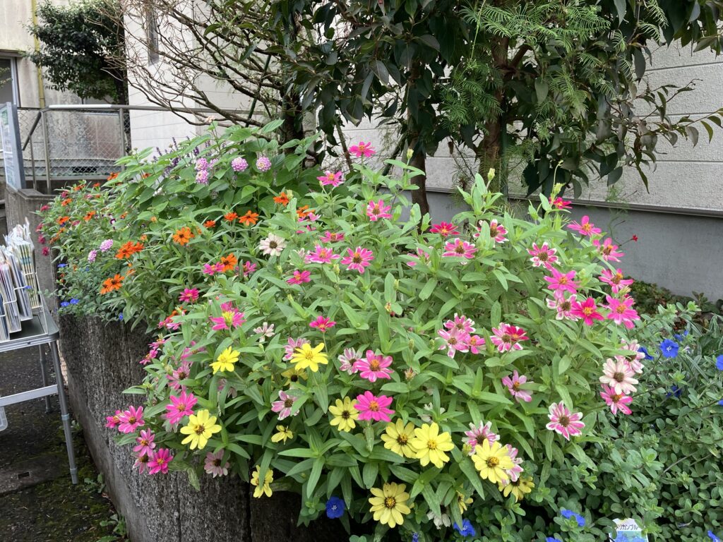 綺麗に手入れされた玄関前の花々