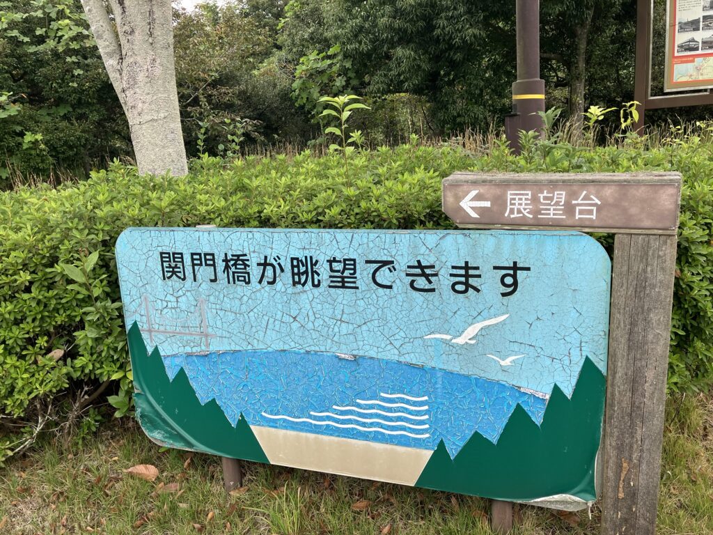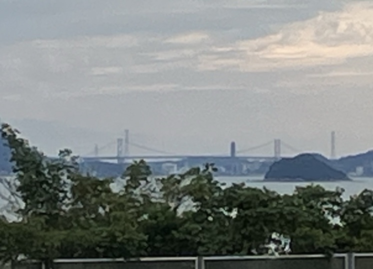 2025年10月22日(水)②オマケ・関門橋?! 2025年10月29日 未分類 下関市のパーキングエリア内に「関門橋が展望できます」と案内表示があったので期待して、歩いて行ってみました。 小高い丘に登ってみると… たしかに遥か遠くに見えました。遥か遠くに…。