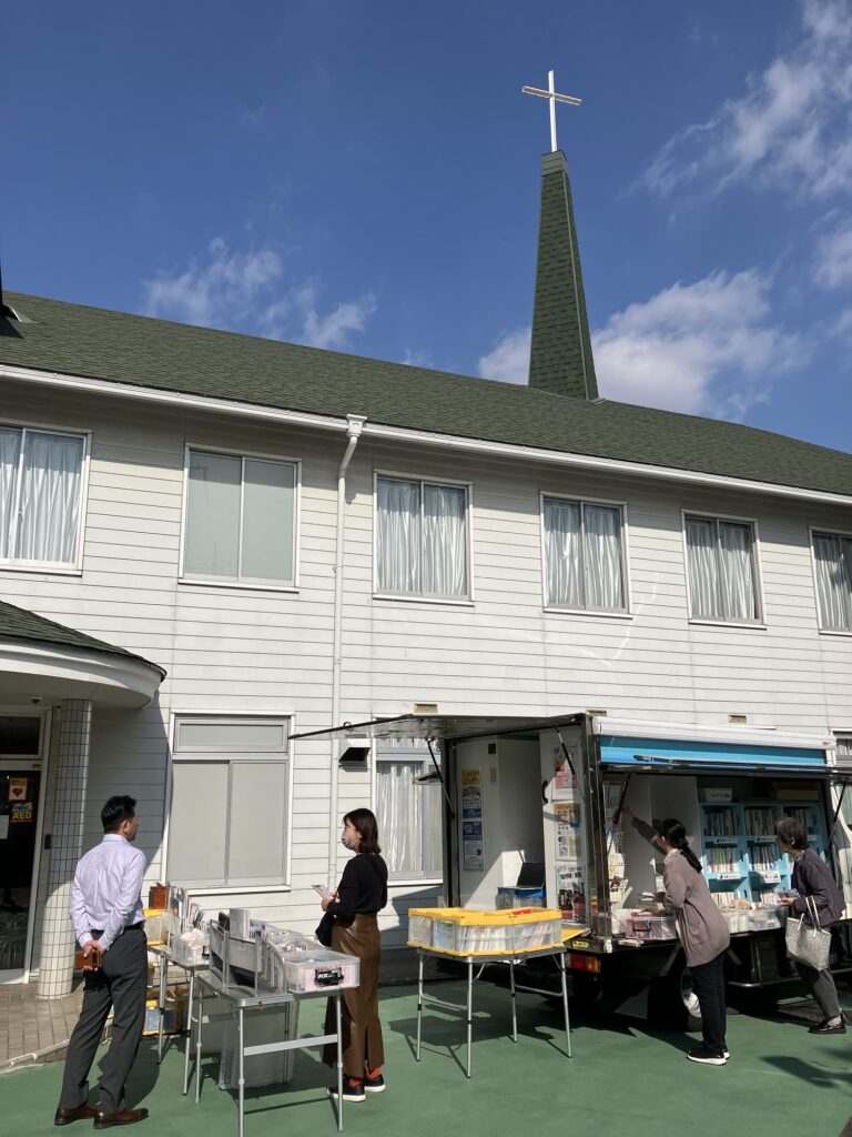 ゴスペルボックスは大阪堺市へ移動。堺中央キリスト教会へお伺いしました。道に迷いながら裏手駐車場に来ましたが、先生が表玄関までの道を丁寧に教えて下さり、無事教会正面に到着できました。今朝は久しぶりに暖かい日差しの中、他教会の方もお買い物に来て頂きました。