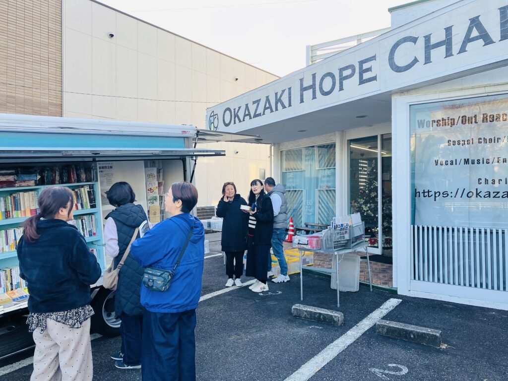2025年11月28日(金)岡崎ホープチャペル 2025年12月9日 ゴスペルボックス ゴスペルボックスは名古屋市から岡崎市へ移動。岡崎ホープチャペルへお伺いしました。明るい先生や信徒さん達が暖かくお迎え下さり、書籍やグッズ等お買い物を楽しんで下さいました。