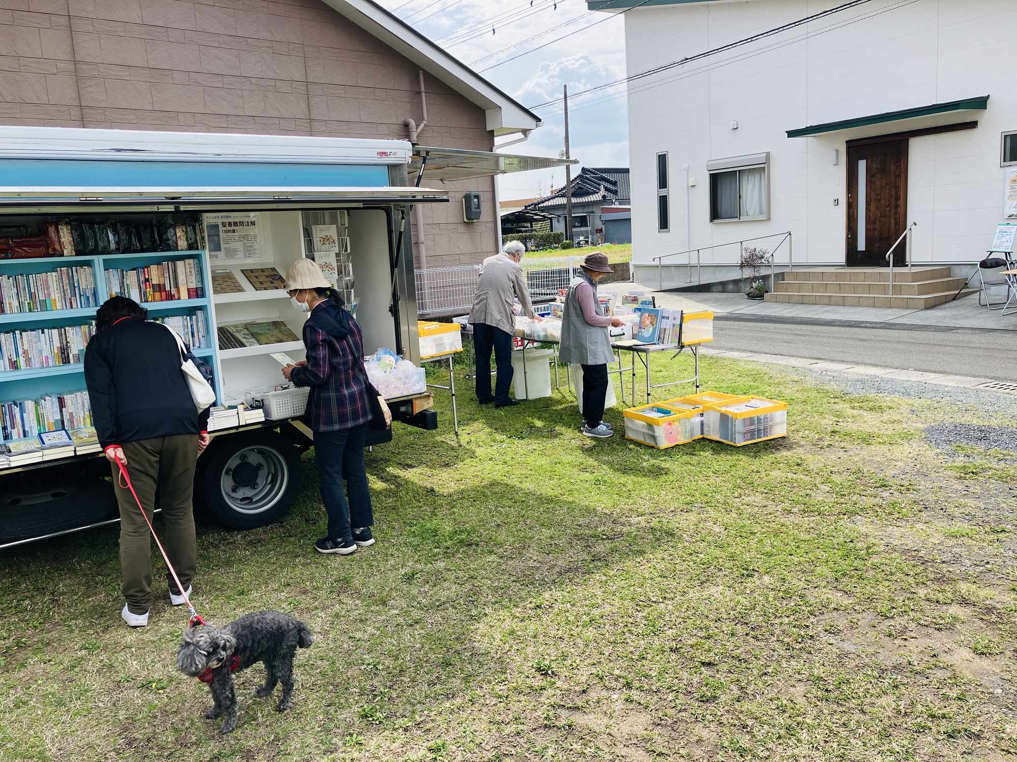 ご近所をお散歩途中のワンちゃんも
