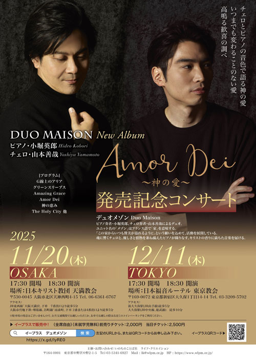 『Amor Dei ~神の愛~』 の発売を記念し、大阪・東京の2会場にて特別コンサートを開催いたします。