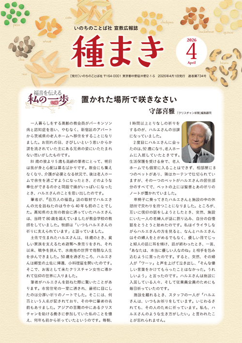 いのちのことば社は、2020年10月で創立70周年を迎えました。70周年事業の一つとして、これまでEHC全国家庭文書伝道協会の発行してきた月刊「たねまき」と、福音点字情報センターの発行してきた季刊「ザ・てんじ」を統合し、さらに年2回発行の「いのちのことば社ニュース」の内容も加え、新たに「種まき」として発刊。